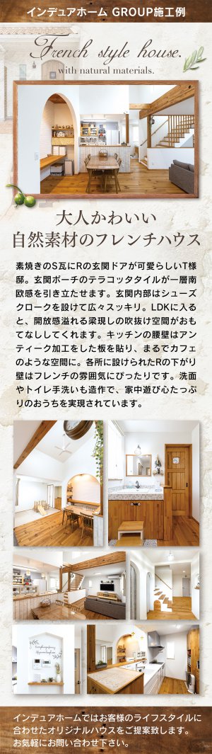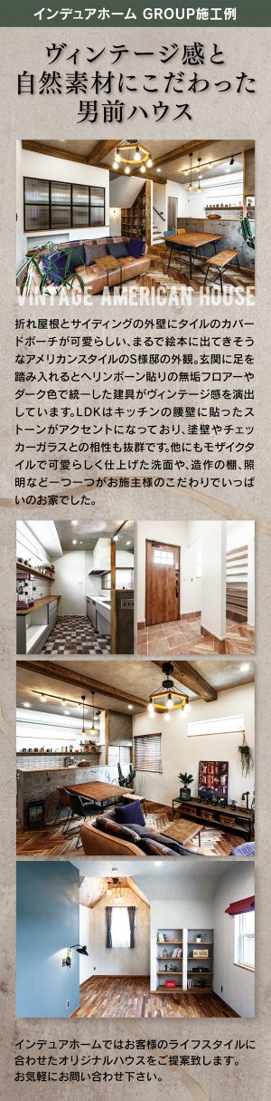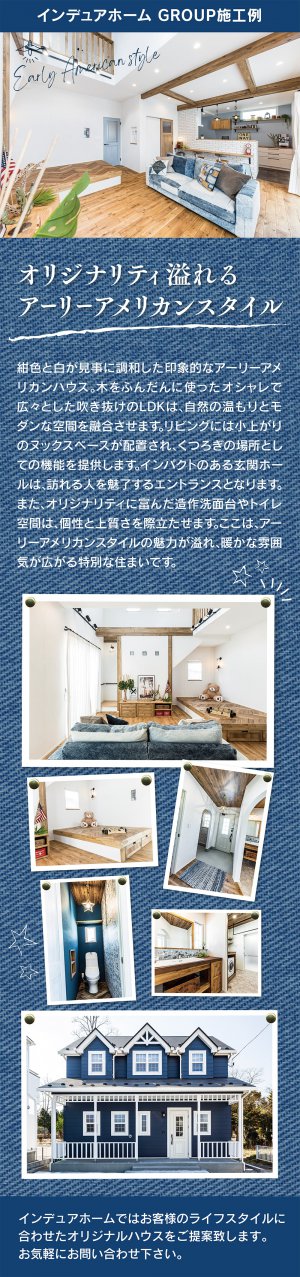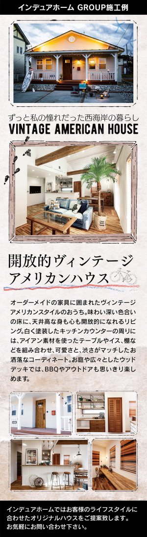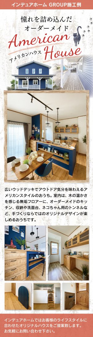 ヴィンテージスタイル、カリフォルニアスタイル、フレンチスタイル、プロヴァンススタイル、アメリカンスタイル、モダンスタイルの家のことなら、私たちインデュアホーム能代が、こだわりの住宅を自信をもって心を込めておつくりします。自然素材の塗壁や、無垢のフロアーなどをふんだんに使用して、高性能でエコな住まいづくりを心がけています。新築(注文住宅)・リノベーションのお問い合わせは、お気軽にインデュアホーム能代までご相談下さい。