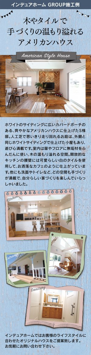 木やタイルで手づくりの温もり溢れるアメリカンハウス